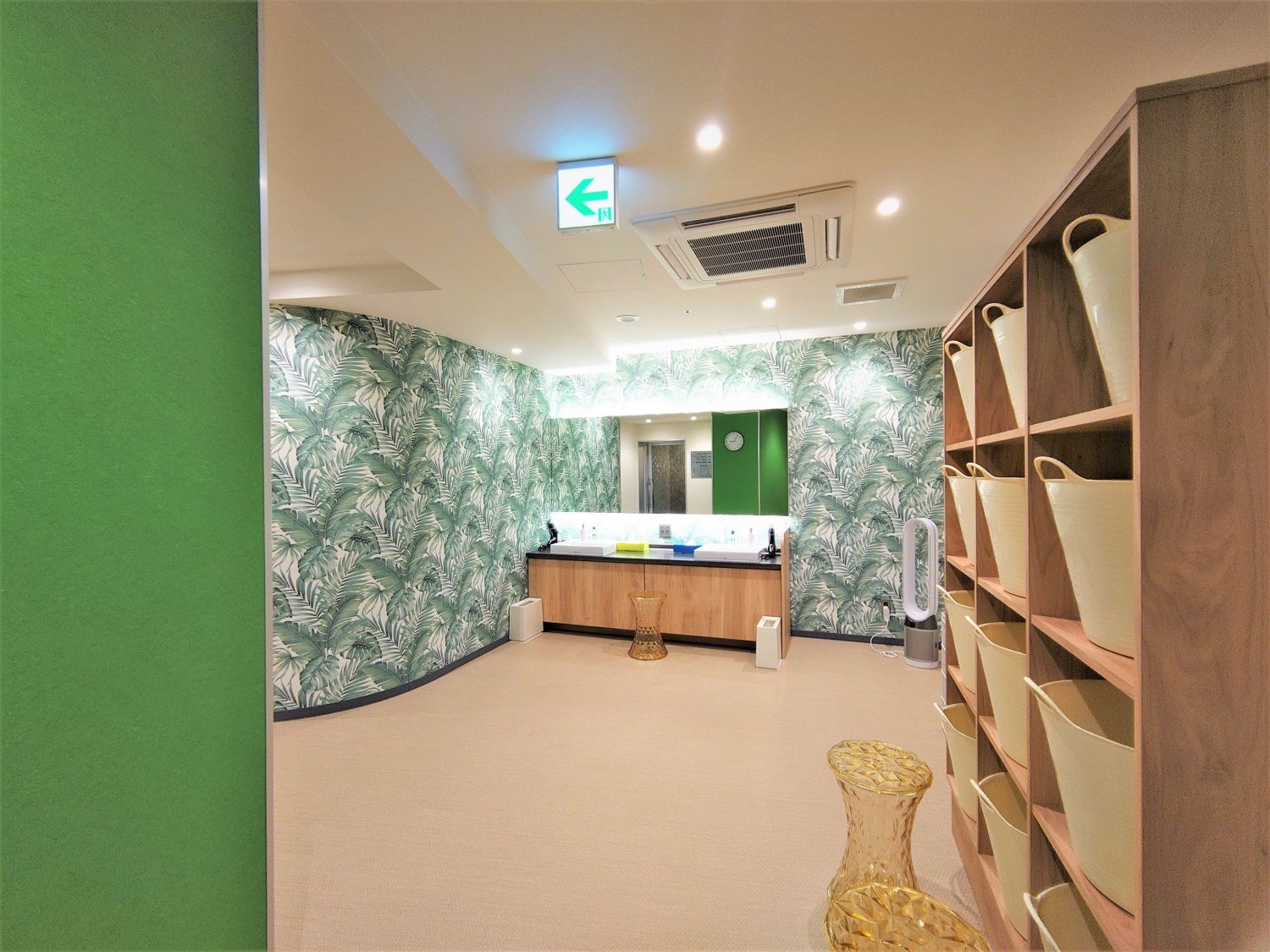 壁面は植物をモチーフにした 曲線の壁でお客様を導くようにデザインされ、自宅ではないリゾート感と自然を体感できる空間作りとなっております。