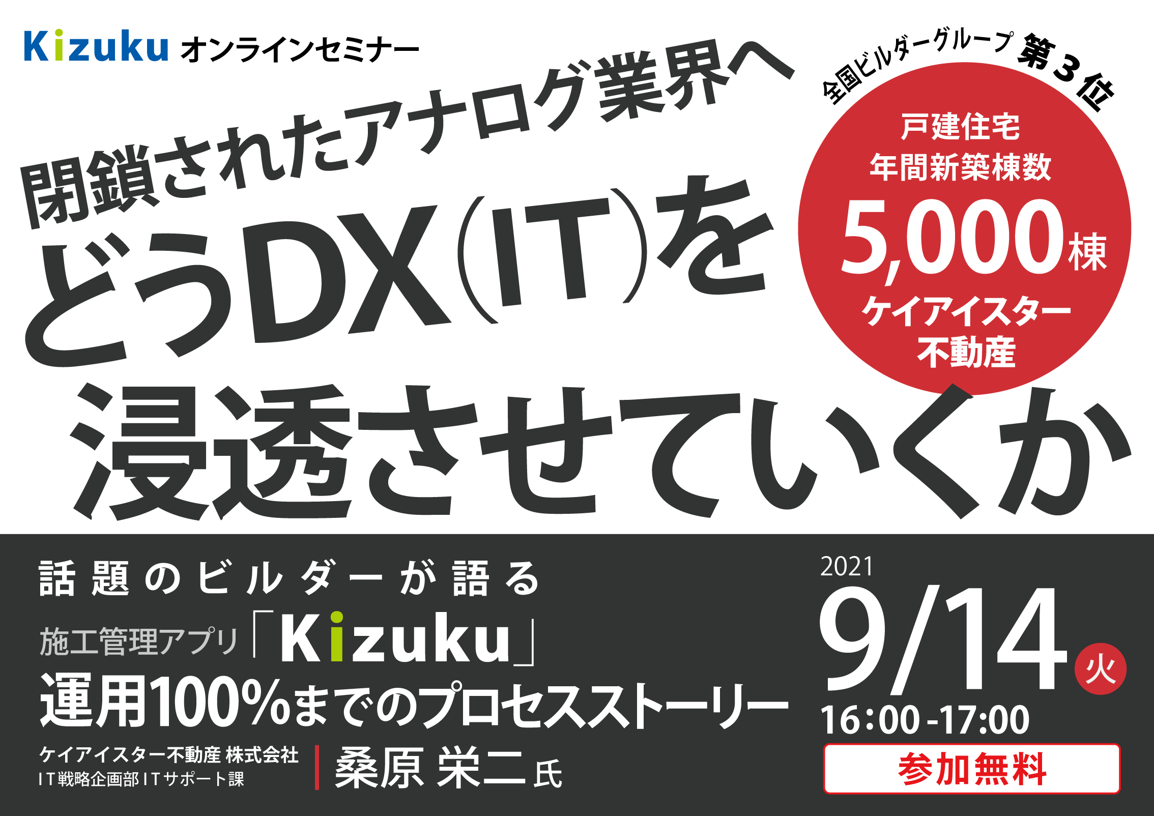 建設DX!IT活用法・運用100%までのプロセスストーリーを 紹介するオンラインセミナーを9/14に開催! ~閉鎖されたアナログ業界へ、どうDX(IT)を浸透させていくか~