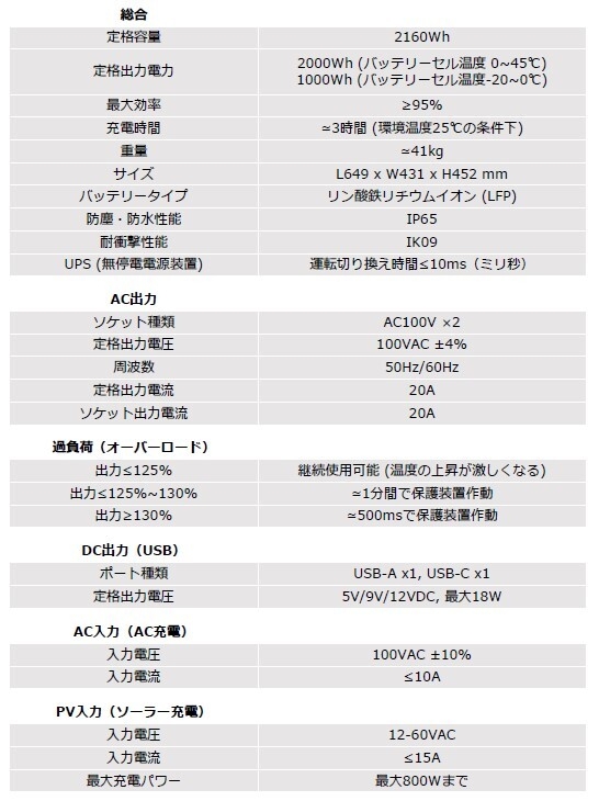 家電や電子機器をフル稼働できる2000Wの高出力を実現。アウトドアや非常時だけでなく、日常生活の補助電源としても優れた性能を発揮します。