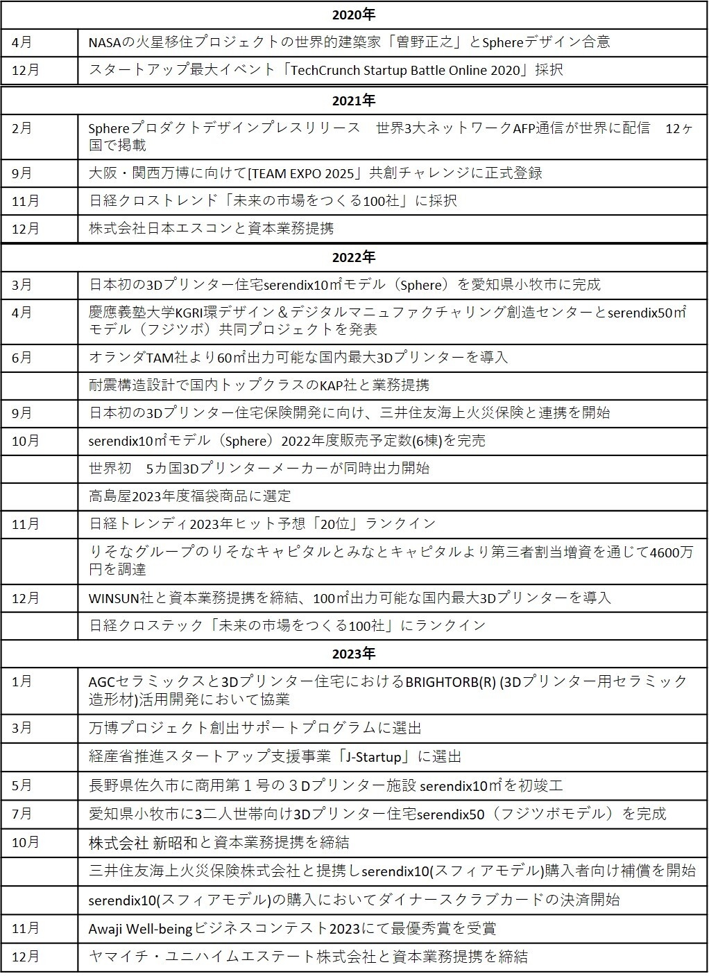セレンディクスでは2022年3月に日本初の3Dプリンター住宅serendix10(スフィアモデル)を23時間で完成以降、2023年5月には一般販売棟第1号であり商用初となる佐久棟、先月末には日本初の二人世帯向け3Dプリンター住宅 serendix50(フジツボモデル)を愛知県小牧市に竣工させ、世界最先端の3Dプリンティング技術を用いた住宅課題解決に取り組んでおります。