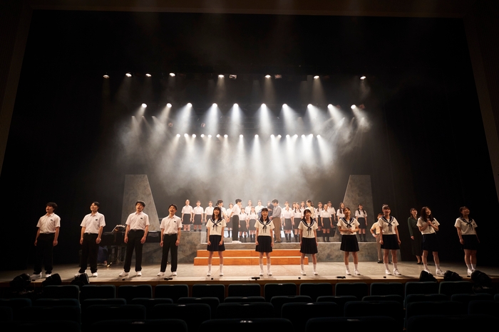 「手紙 〜拝啓 十五の君へ〜」、そして本作のためのオリジナル楽曲「雲を抜けて」の合唱シーンが見どころの舞台「くちびるに歌を」は、12月10日(土)から16日(金)までの期間、東京・かめありリリオホールで上演。12月10日と11日は、シンフォニーヒルズ少年少女合唱団が、13日から16日はオーディションで参加していただいたメンバーが他校の生徒役として出演する。