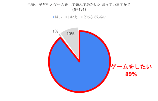 ステイホーム期間中に子どもとゲームをしなかった親も含めてアンケートを行ったところ、89.0%が今後親子でゲームをプレイしたいと回答