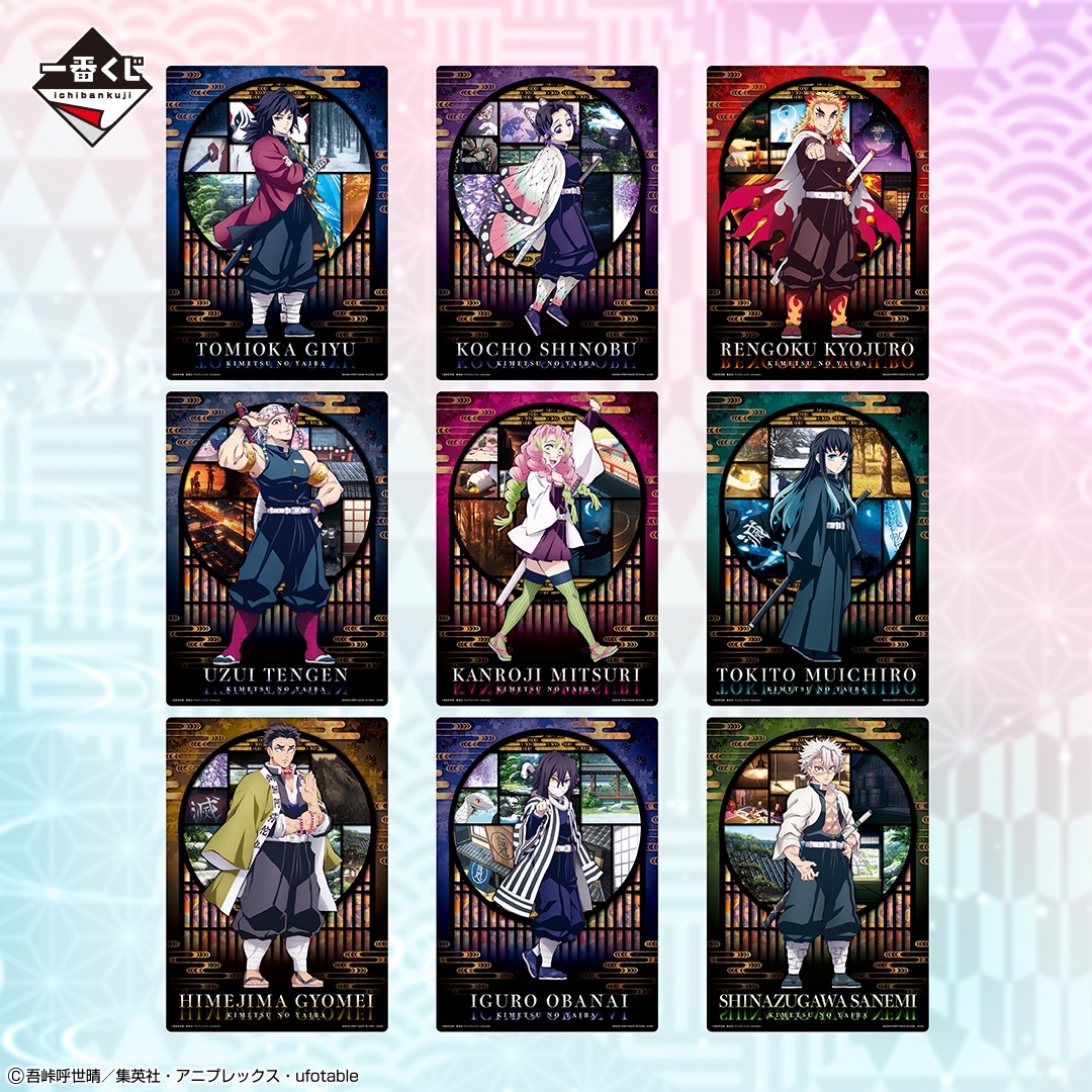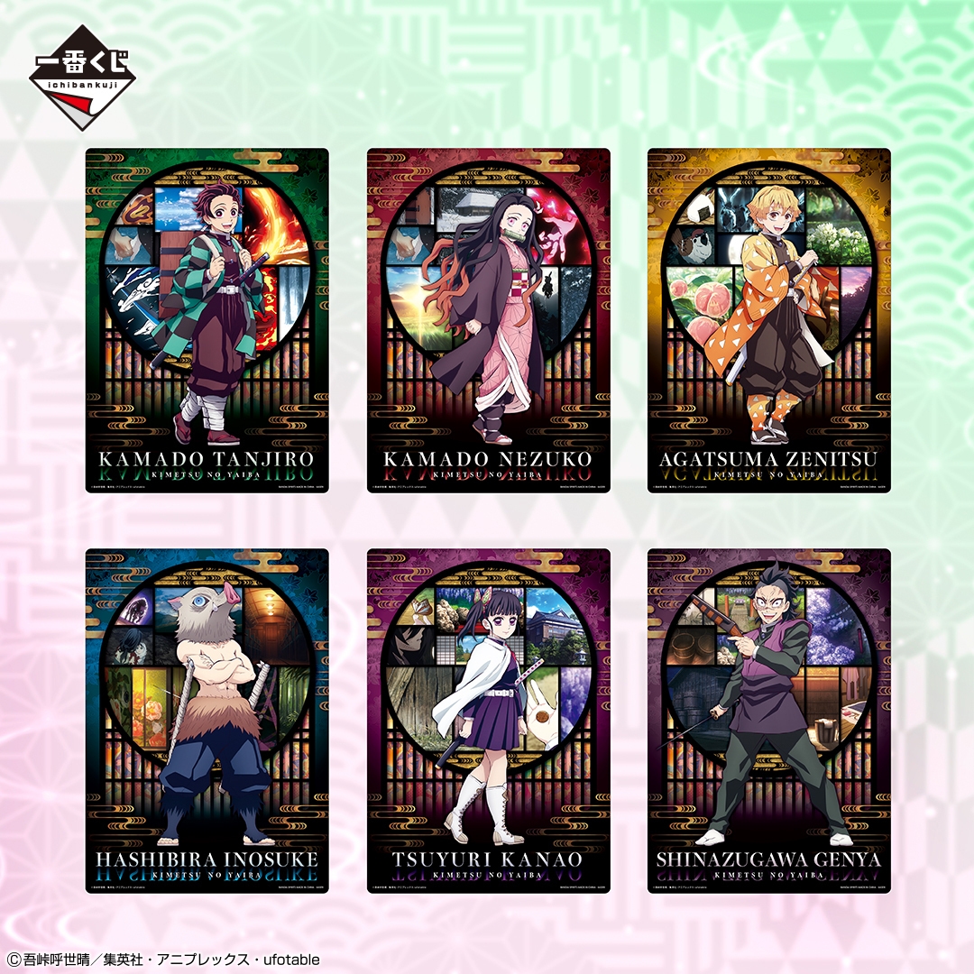 このほか、胡蝶しのぶの薬瓶をイメージしたガラス瓶の2本セット、頬杖をついたポーズのちょこのっこアクリッツマスコット、各キャラクターのモチーフがデザインされた小皿、各キャラクターと劇中シーンをデザインしたビジュアルシートと、いずれも一番くじならではの商品を取り揃えました。