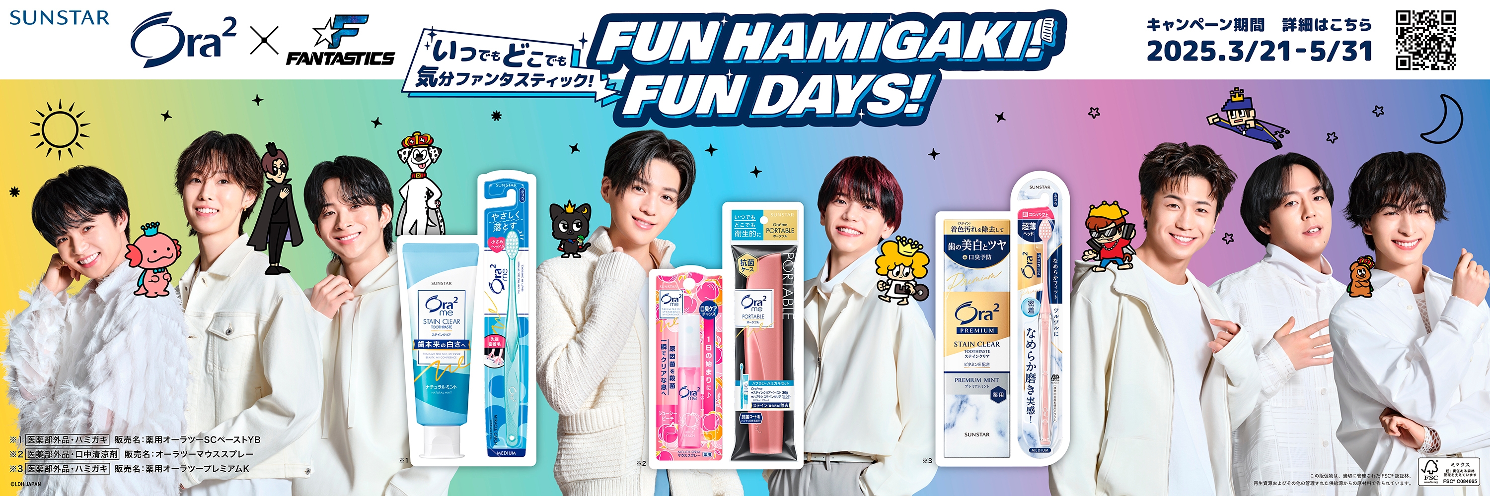 サンスターグループ(以下サンスター)のオーラルビューティーケアブランド「Ora2(オーラツー)」(以下オーラツー)は、FANTASTICSを期間限定のアンバサダーに起用し、3月21日(金)より新WEBCM「FUN HAMIGAKI! FUN DAYS!」を公開します。さらに、3月19日(水)から数量限定で中島颯太さんプロデュースのオリジナルキャラクターが登場するコラボデザイン製品の販売のほか、3月21日(金)には豪華オリジナルコラボグッズなどが当たるキャンペーンを実施します。