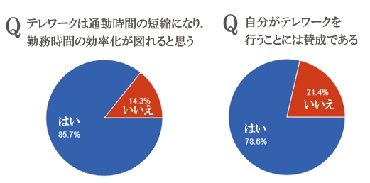通勤時間を短縮でき、その時間を家事や育児、リラックスタイムに使えるという前向きな意見が大半でしたが、通勤することによる自分自身のON・OFFのスイッチングが出来るという意見もありました。その人の勤務スタイルに合った働き方も必要だと思われます。