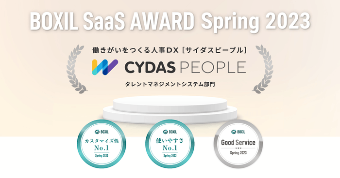CYDAS PEOPLEが「BOXIL SaaS AWARD Spring 2023」タレントマネジメントシステム部門で「Good Service」ほか2つのNo.1に選出されました