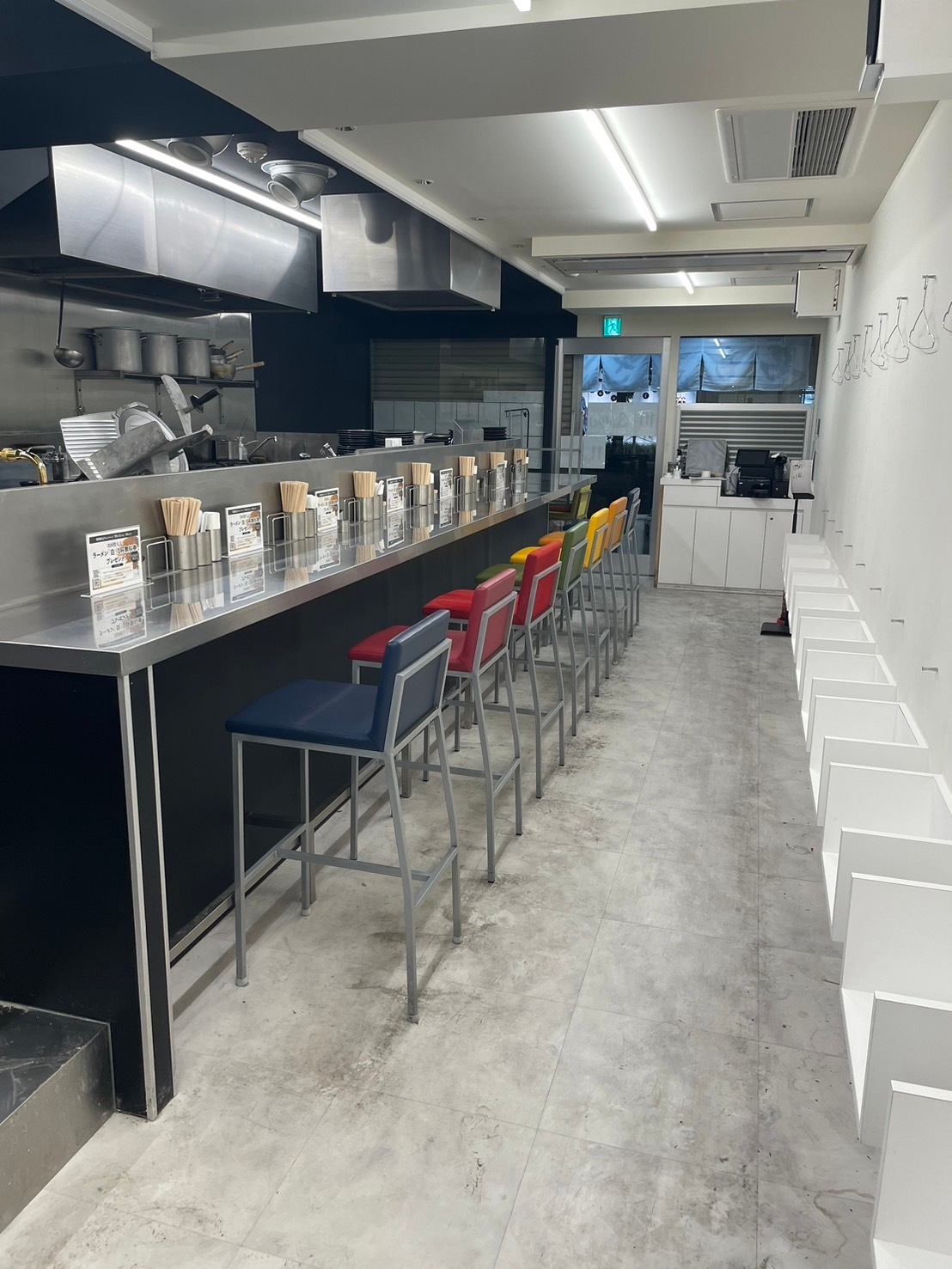 ラーメン屋らしからぬ、POPな居心地のいい空間を演出。店内はカウンターのみとなりますが、広々としてゆっくりお食事いただけます。