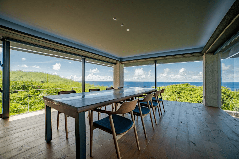 敷地に入ると視界に広がるのは海と空と木々の自然のみという贅沢な空間。