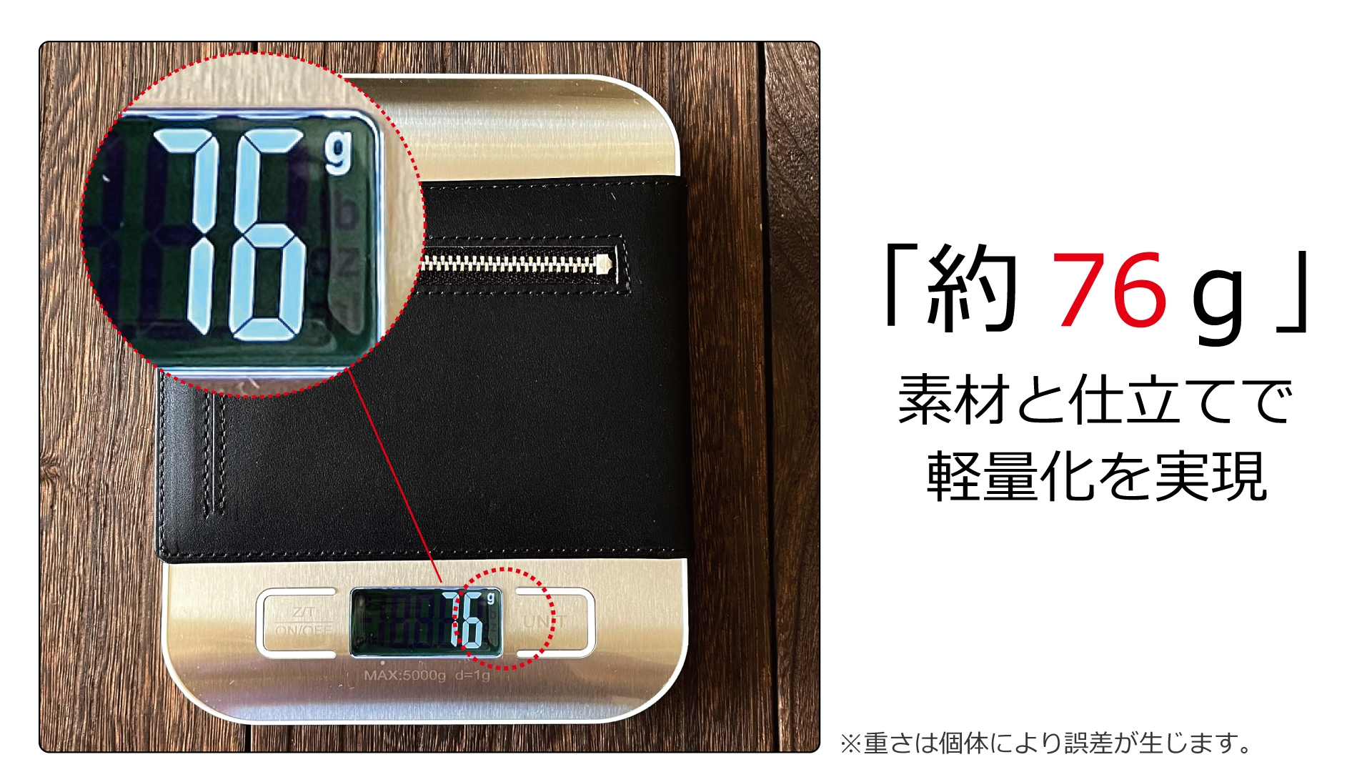 ①最大21枚収納しても厚み約2cm。軽くカーブする仕様でヒップポケットに入れてもスッキリ。