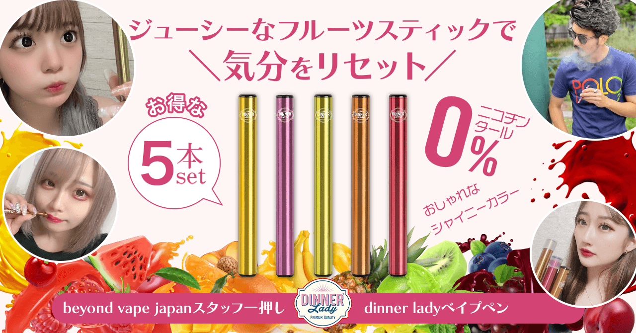 Beyond Vape Japan(運営会社:株式会社AMDIA)は、電子タバコ(VAPE)の実店舗販売経験を活かし、昨今の情勢とお客様のニーズに合わせ「手軽にリフレッシュしたい」時に最適な“吸うフルーツスティック”(DinnerLady)の販売を開始いたしました。