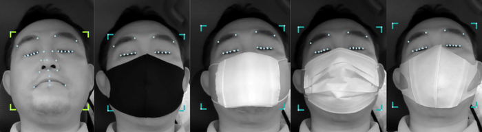 当社はこのような課題の解決に向けて、多様なマスクを着用していても高精度に顔を検出し(図1)、かつ、顔認証(ドライバー識別)も可能なFaceU for DMS Ver.2.8.2を開発しました(図2)。