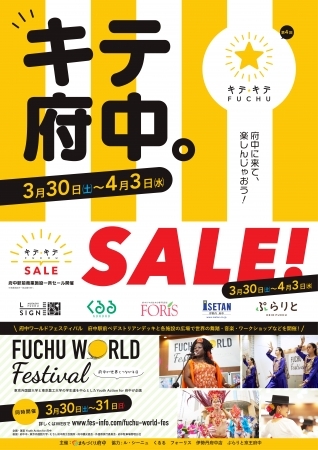 4回目となる今回は、3月30日(土)から4月3日(水)の期間中、商業施設では合同でセールを行うほか、3月30日(土)、3月31日(日)の2日間は、世界の文化を見て、触れて、楽しめる「FUCHU WORLD FESTIVAL」も実施します。