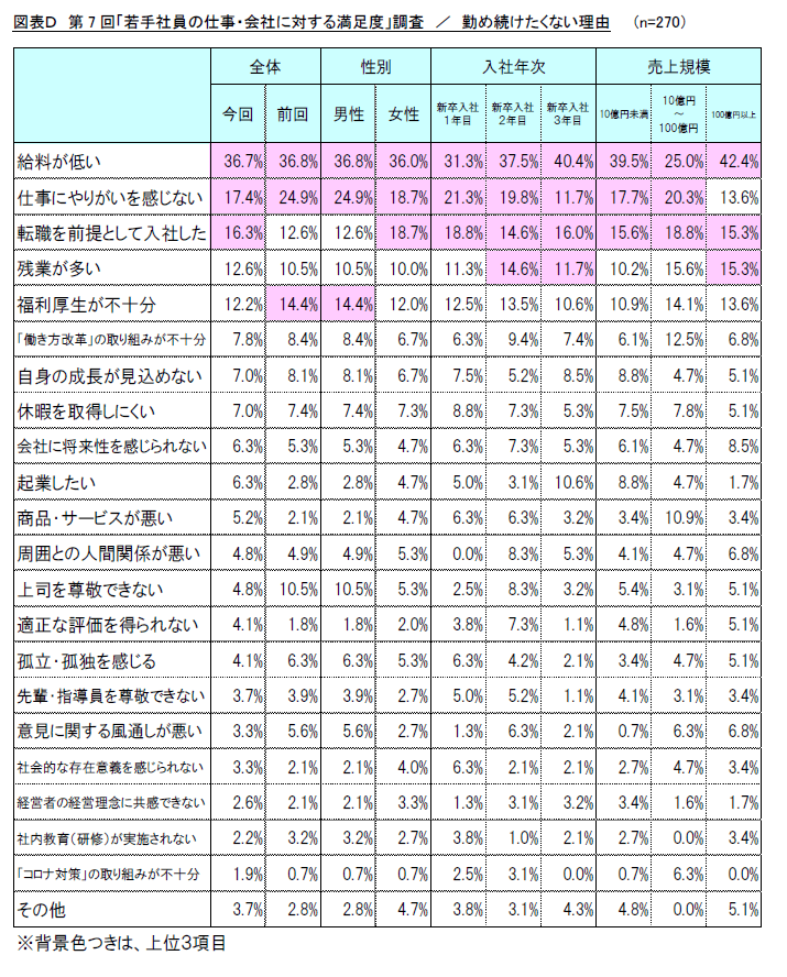 ・調査名称 : 第7回「若手社員の仕事・会社に対する満足度」調査