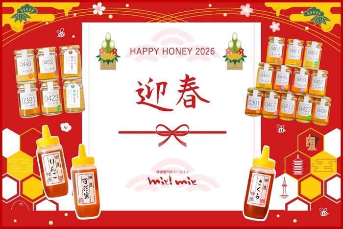 京都の蜂蜜専門店「ミールミィ」(運営:株式会社金市商店/京都市中京区)は、「蜂蜜専門店ミールミィ三条本店」と「ミールミィネットショップ https://miel-mie.com/ 」にて、2025年11月4日(火)より「2026新春はちみつ福袋」の予約販売を開始いたします。