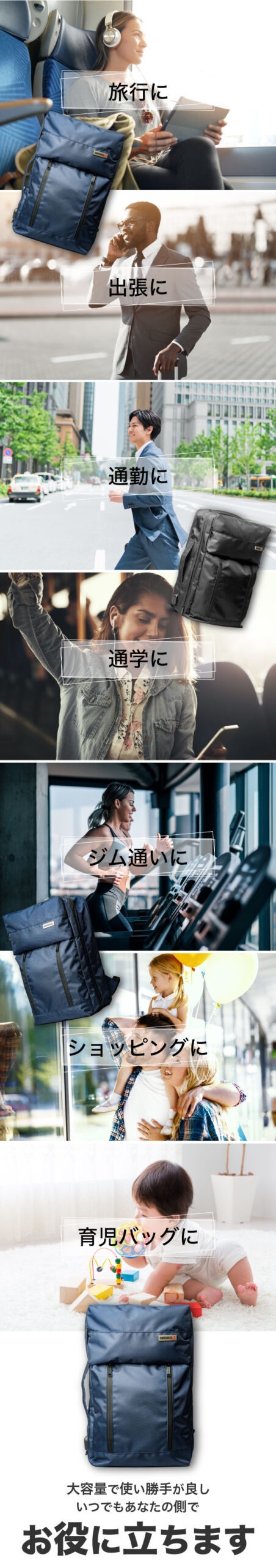 (4)持ち運び便利なキャリーオンベルト完備。コンパクトなのに大容量な秘密は長方形だから!