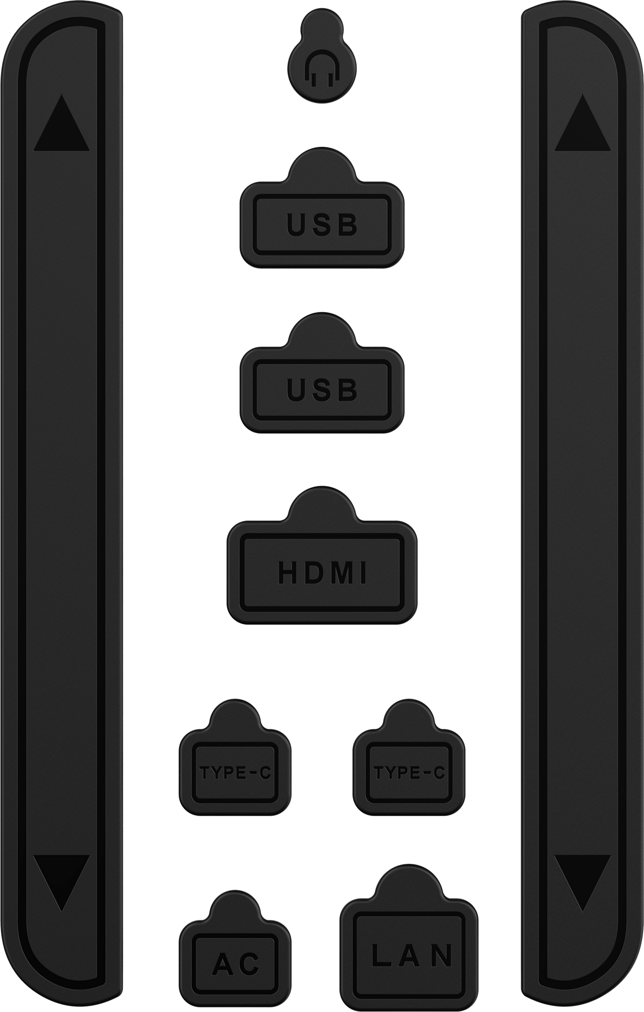 ■セット内容: 本体側面用×2、ヘッドホンマイク端子用×1、USB Type-C端子用×3、USB A端子用×2、HDMI端子用×1、LAN端子用×1、
