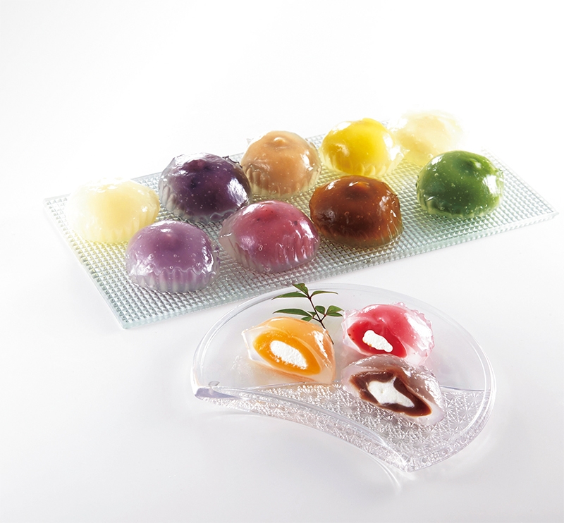宝石をイメージして作った水まんじゅう。上質で風味豊かな餡やクリームで丁寧に仕上げました。