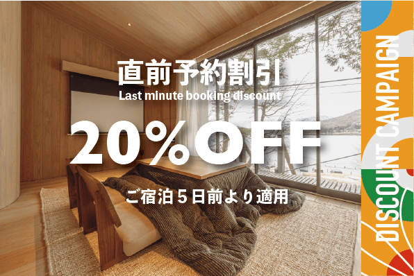 ご要望の多かった直前割引を開始しました。ご宿泊日の5日前よりご利用いただけます。ご予約の際は現地精算を選択して下さい。(現地決済で現金、カードなど各種ご利用可能)
