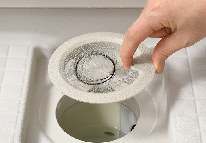 髪の毛をしっかりキャッチするので、排水管の詰まり予防になります。髪の毛を触ることなくネットごとポイッ!と捨てられます。