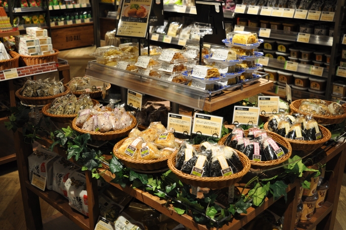 さらに多くのお客様にお買い求めいただけるよう、人気のおにぎりの売り場を拡大いたしました。素材や添加物に配慮した「ビオラルのお惣菜」は、新商品も随時登場いたしますのでお楽しみに!