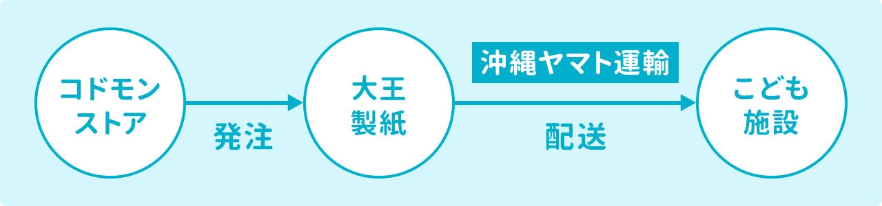 この度、株式会社コドモンおよび大王製紙株式会社が沖縄県にコドモンストア独自の物流計画をご用意することで、通常本州から沖縄県に送るためにかかる送料・納期を大幅に削減することが可能になりました。沖縄県内の配送は、沖縄ヤマト運輸株式会社が協力します。対象は離島も含む沖縄県全域のこども施設になります。