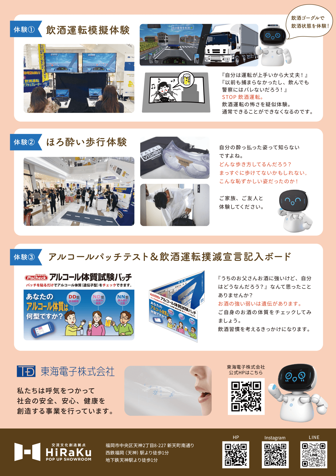 アルコール問題に対する社会的な取り組みを推進する東海電子株式会社(本社:静岡県富士市 代表取締役:杉本 哲也)は、飲酒運転の根絶を目的とした新たな取り組みとして、2025年1月19日(日)から21日(火)に、福岡市でポップアップカフェイベントを開催いたします。