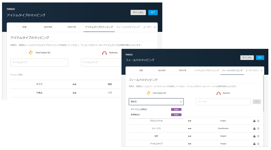 最新版のTimeTracker NXでは、オプション機能である「TimeTracker NX Sync」を使うことで、JiraやRedmineのスプリント・リリースと、TimeTracker NXのWBSが持つデータを自動で同期します。また、タスクや課題といった連携するチケットのタイプ、連携するチケット内のフィールド、データの同期の方向(双方向、片方向)など、同期の設定を柔軟にカスタマイズできます。