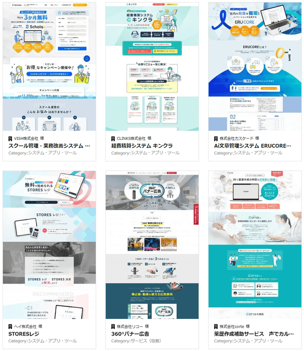 システム・アプリ・ツールのPC向けLP制作実績を52件に公開|SaaS・BtoB分野でのデザイン事例を新たに追加公開