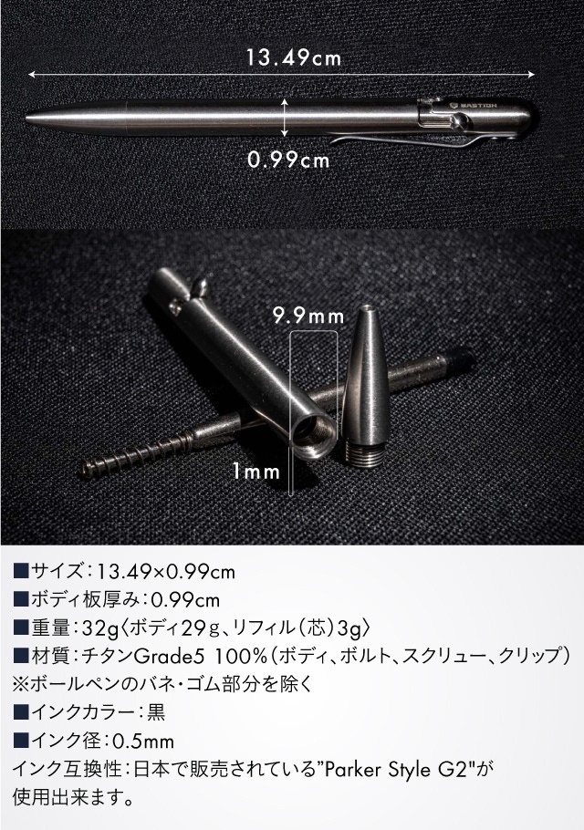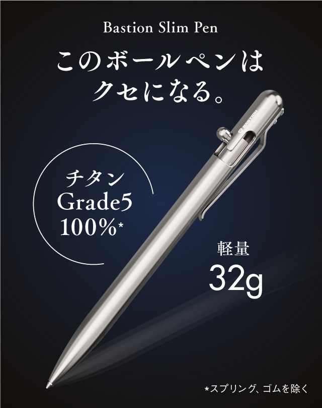 持ちやすいサイズ&重さのチタンボールペン 「Bastion Slim Pen」をAmazon、楽天市場にて販売開始