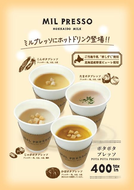 北海道 行列のできるソフトクリームショップ「MIL PRESSO」が こだわりの材料を使用した濃厚なポタージュスープ 『ポタポタプレッソ』を2021年1月23日より販売開始