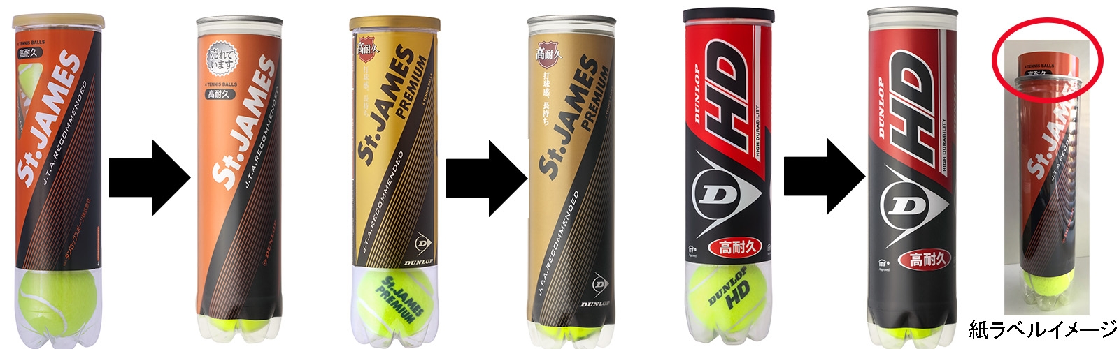 試合球として使用され多くのテニスプレーヤーに愛用いただいているテニスボール「ダンロップ フォート」、「Dunlop Australian Open(ダンロップ オーストラリアン オープン)」について、プラスチック製のふたを紙製に変更。練習球の「St. James(セント・ジェームス)」、「St. James Premium(セント・ジェームス・プレミアム)」、「DUNLOP HD(ダンロップ・エイチディー)」については、プラスチック製のふたを廃止し、ラベルをプラスチック製シュリンク包装から紙製に変更します。商品は2023年春頃から順次切り替わる予定です。これらの取り組みにより日本国内で、年間約20トン以上のプラスチック使用量の削減を見込んでいます※1。また海外でも、2024年以降、国・地域の特性に合わせた同様の対応を進めていく予定です。
