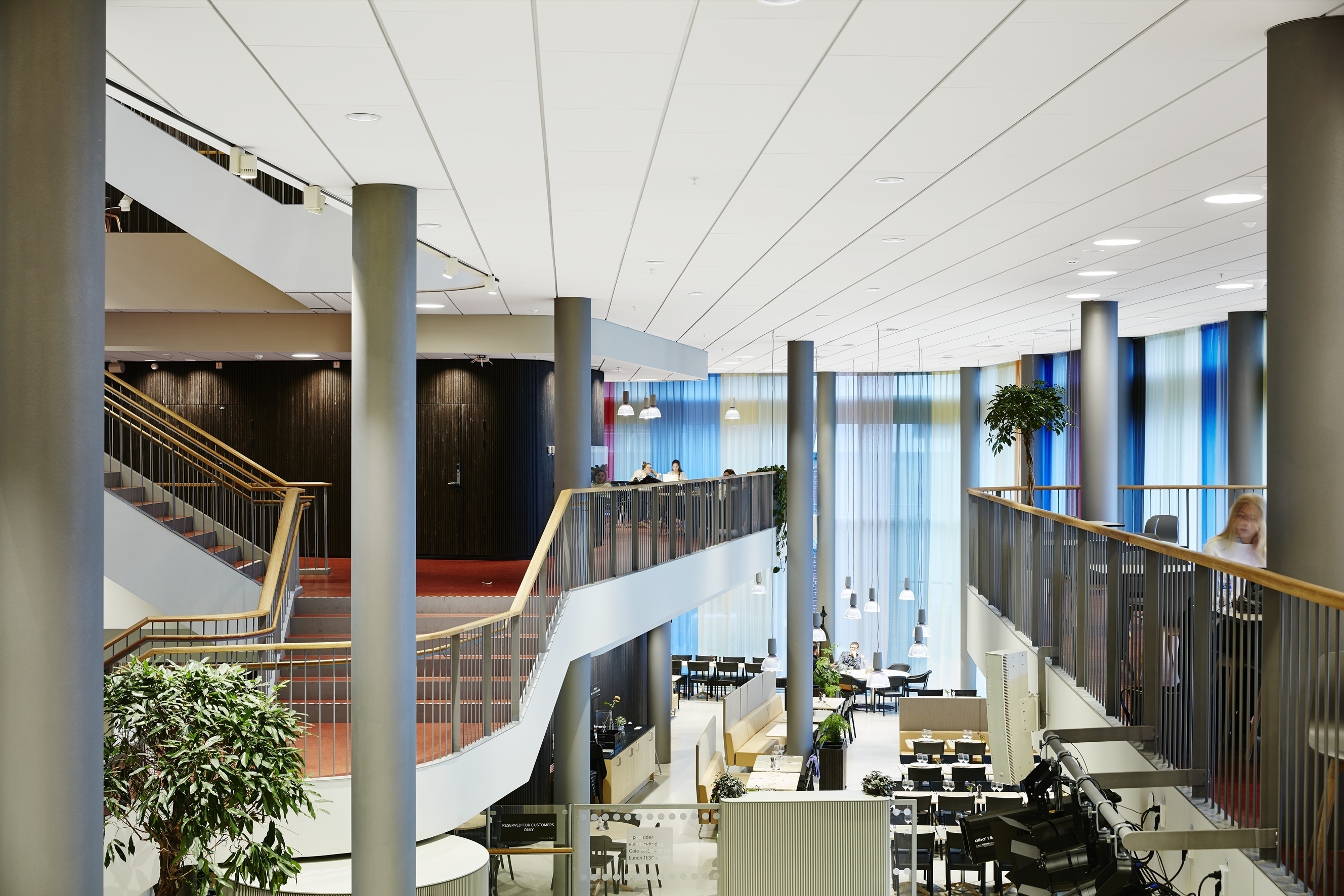 Ecophon製品の基材であるグラスウールは多孔質材料のため、中音域から高音域までの幅広い音域において優れた吸音性能があり、音の反響が気になる大空間の天井面や、劇場や音楽ホールにおける音響調整用として使われています。Ecophon製品は国際規格EN ISO 11654の最高グレードであるclass Aに分類される吸音材を含む優れたラインナップを持ち、建物内にいながら自然の中にいるような心地よい音環境を実現させます。