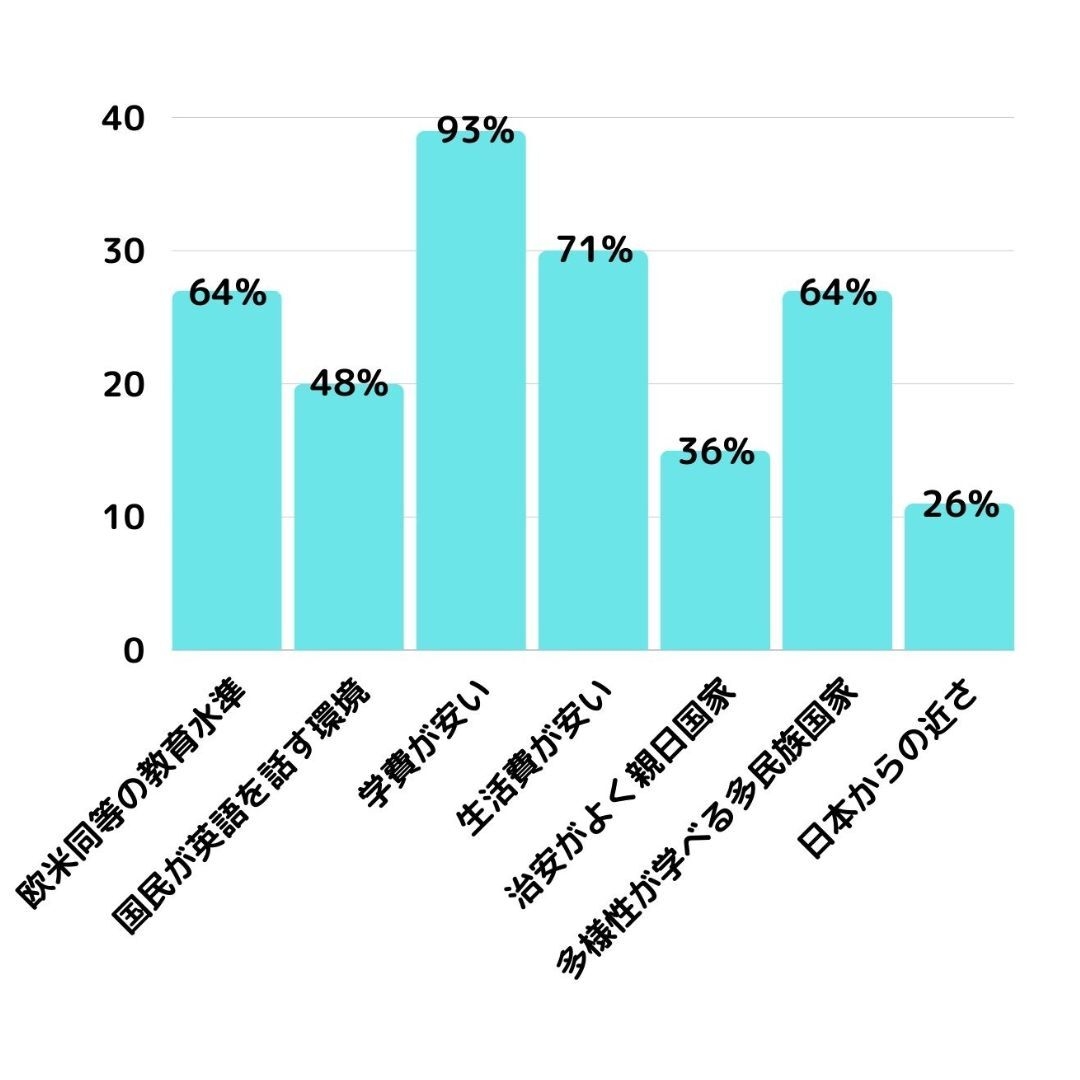 当社が2024年7月に実施したマレーシア大学現地見学会の調査では、参加者の大多数が「学費の安さ」や「生活費の安さ」を魅力として挙げており、欧米留学の経済的負担が大きな課題であることが明らかになりました。