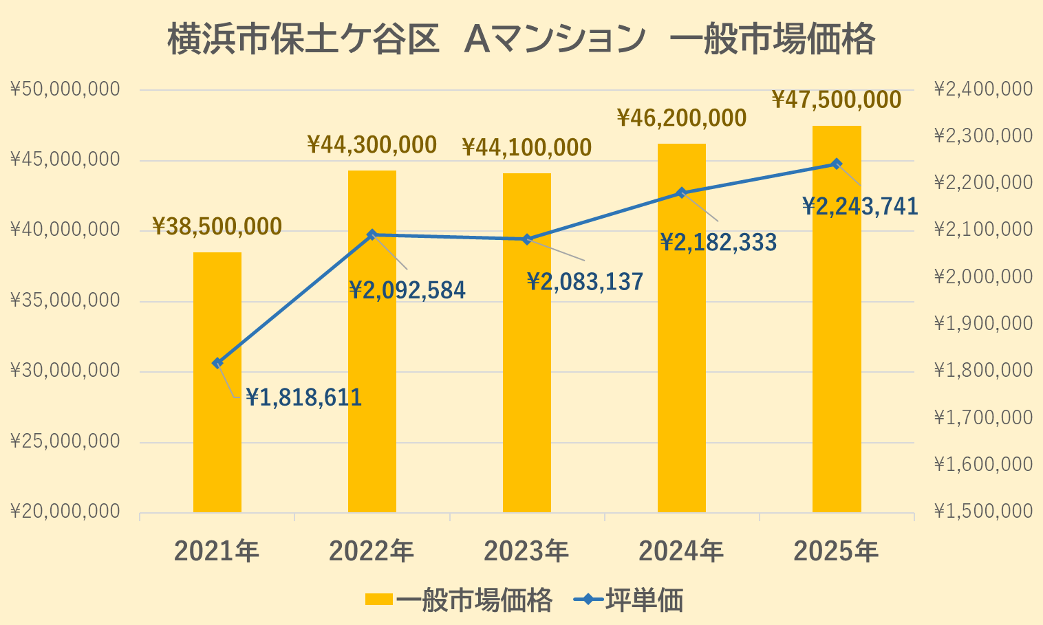Aマンションの一般市場価格・坪単価の推移は上記【図3】の通りです。