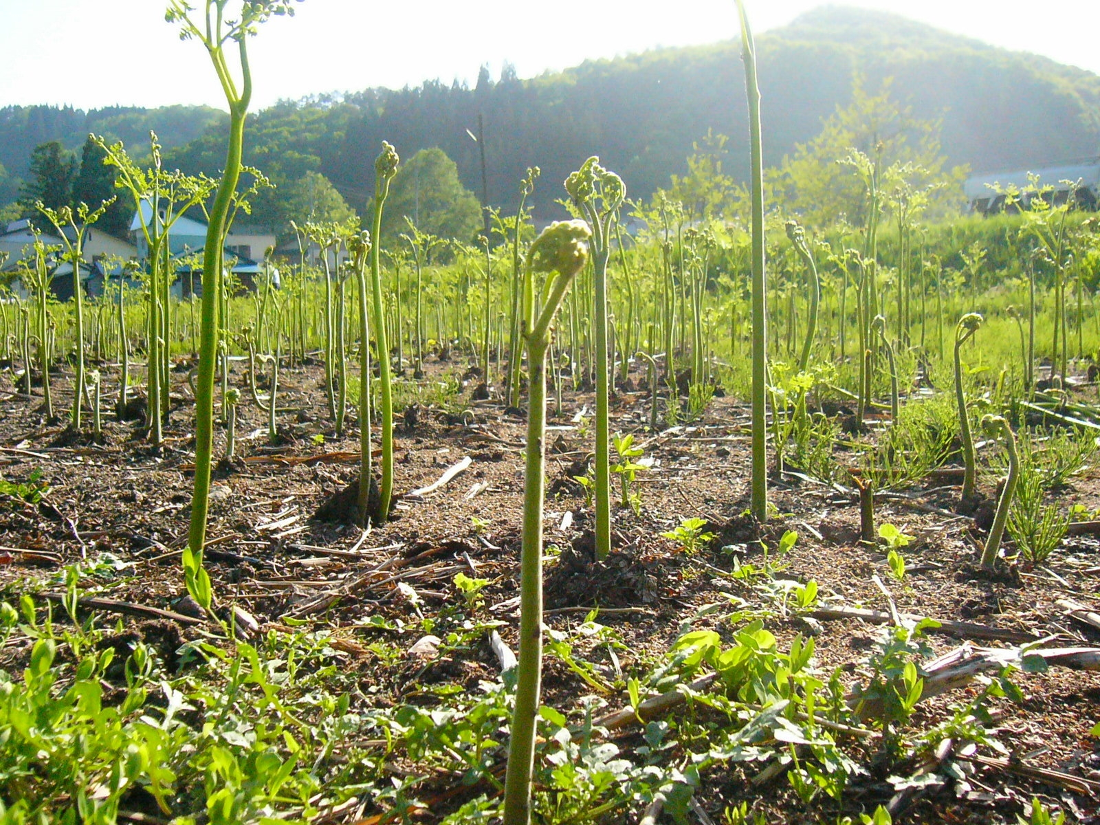 小田島 薫氏は平成3年に営林署を定年退職後、自宅裏の広大な畑で山菜の研究を開始。平成13年からわらびの生産に取り組みました。その後西わらびの畑での栽培法を確立し、希望する町民に苗を無償提供するなどの功績から「西わらびの父」「西和賀の父」と呼ばれ親しまれています。『黒わらび』はそんな小田島 薫氏が長年の研究を経て生み出した西わらびです。見た目にも黒光りするほどいっそう青々としていることからその名がつけられた『黒わらび』。栽培するには、既存のわらび畑をすべて根っこから取り換える必要があるほど緻密な環境が要求されます。