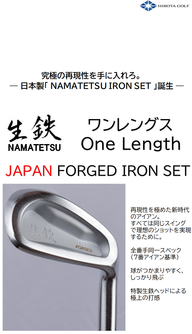 オリジナルゴルフ用品用具の開発製造販売を行う株式会社広田ゴルフ(所在地:兵庫県神戸市西区)は、オリジナルブランドの1つである生鉄(NAMATETSU)ブランドより軟鉄鍛造フォージドアイアンのワンレングスアイアンを2025年6月30日より発売開始します。