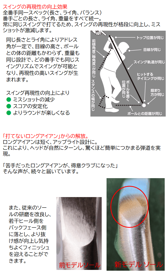軟鉄鍛造でのワンレングスアイアンは2016年より展開をしており、一時は生産終了モデルでしたが、ご要望にお応えする形で復刻リニューアル発売します。