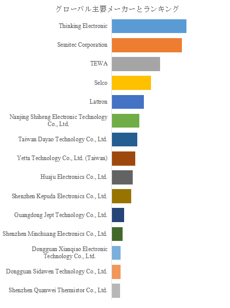 世界のMF55薄膜NTCサーミスタ市場においては、Thinking Electronic、Semitec Corporation、TEWA、Selco、Lattronといった企業が主要プレーヤーとして存在感を示している。さらに、Nanjing Shiheng Electronic Technology、Taiwan Dayao Technology、Yetta Technology(Taiwan)、Huaju Electronics、Shenzhen Kepuda Electronicsなどアジアの中堅企業も急速に台頭している。2024年には、世界上位5社が売上の約34.0%を占め、市場集中度は中程度ながら技術志向型の競争が進行している。各社は、薄膜成膜精度の向上、熱応答時間の短縮、長寿命化を目指した材料改良などを重点課題とし、差別化を図っている。また、自動車OEMや医療機器メーカーとの協業を通じたカスタム設計の展開も進み、用途特化型の供給モデルが形成されつつある。こうした技術と市場の両輪による戦略が、各社の持続的成長を支えている。
