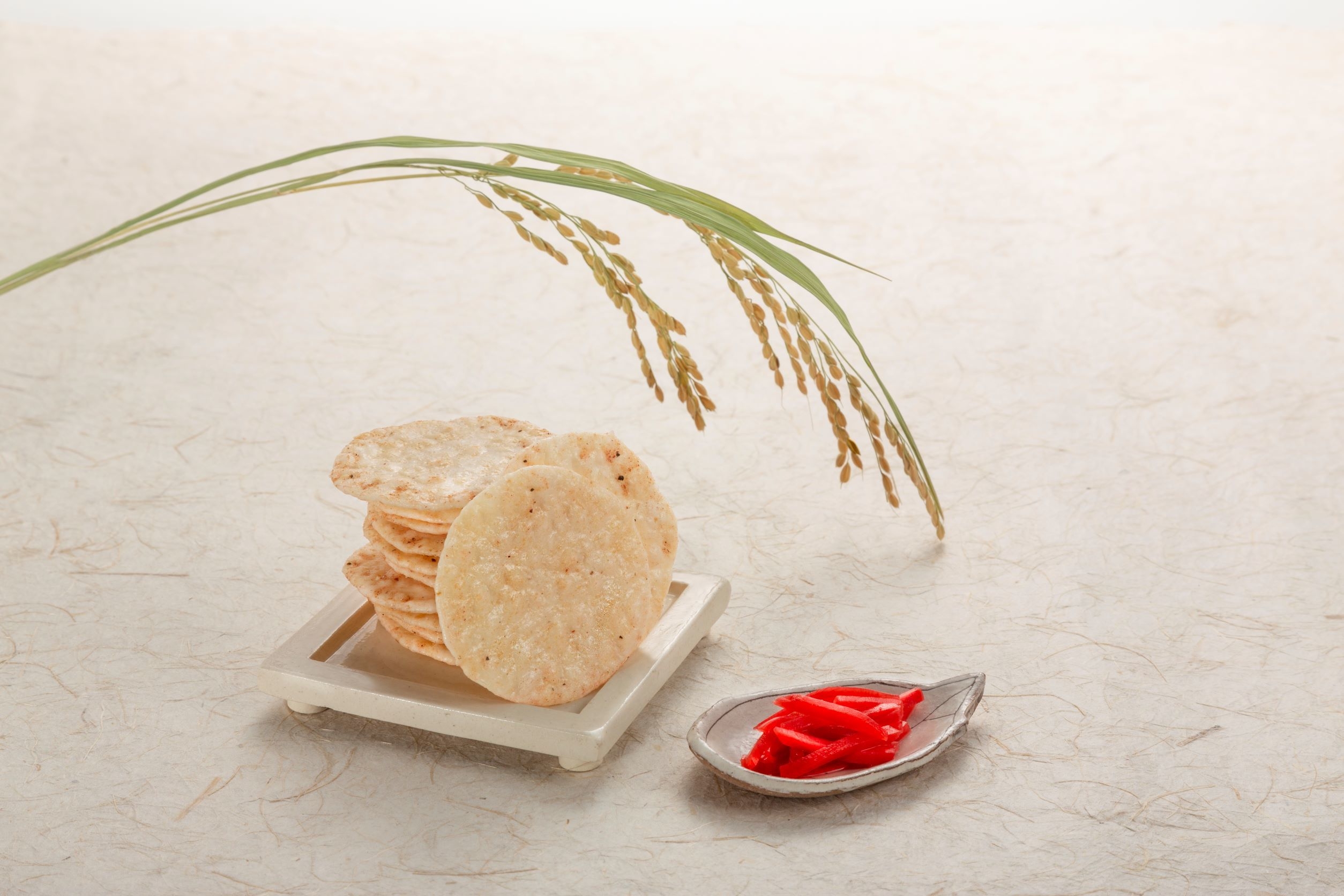 老舗メーカーの更なる挑戦が続く「お土産米菓」の第二弾は大阪ならではの「紅生姜味」にいたりました。多くの国内外のお客様に「うまみ」を感じ「紅生姜」の味を召し上がりやすい「せんべい」で表現しました。わずか4グラムのせんべいに凝縮された味は、つい食べたくなる味に仕上がった。
