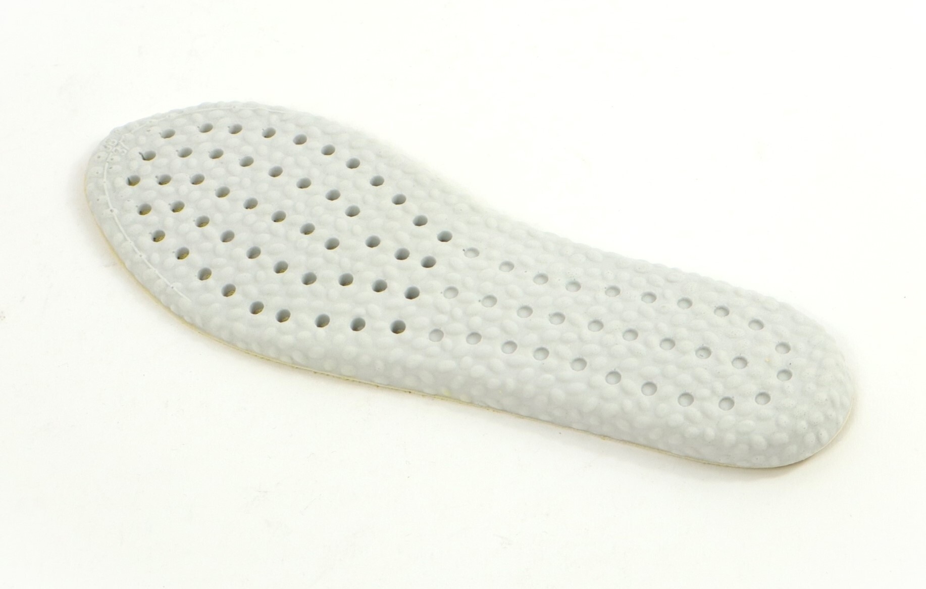 - クッショニングを重視したラテックス性のインソールを採用。プニプニとした感覚が履いた瞬間から心地よく、足裏のトラブルに対してもやさしい弾力。また、通気孔を多数設け、蒸れも予防。表面には抗菌防臭メッシュを貼り、気温の高い時期にも適応。