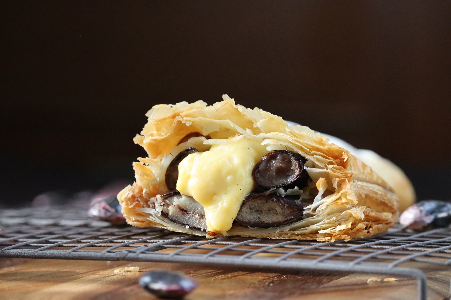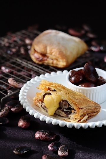 群馬県北軽井沢産の大粒の高原花豆がたっぷりと入ったパイとトロトロのカスタード、サクサクのパイ生地が合わさった新感覚スイーツです。
