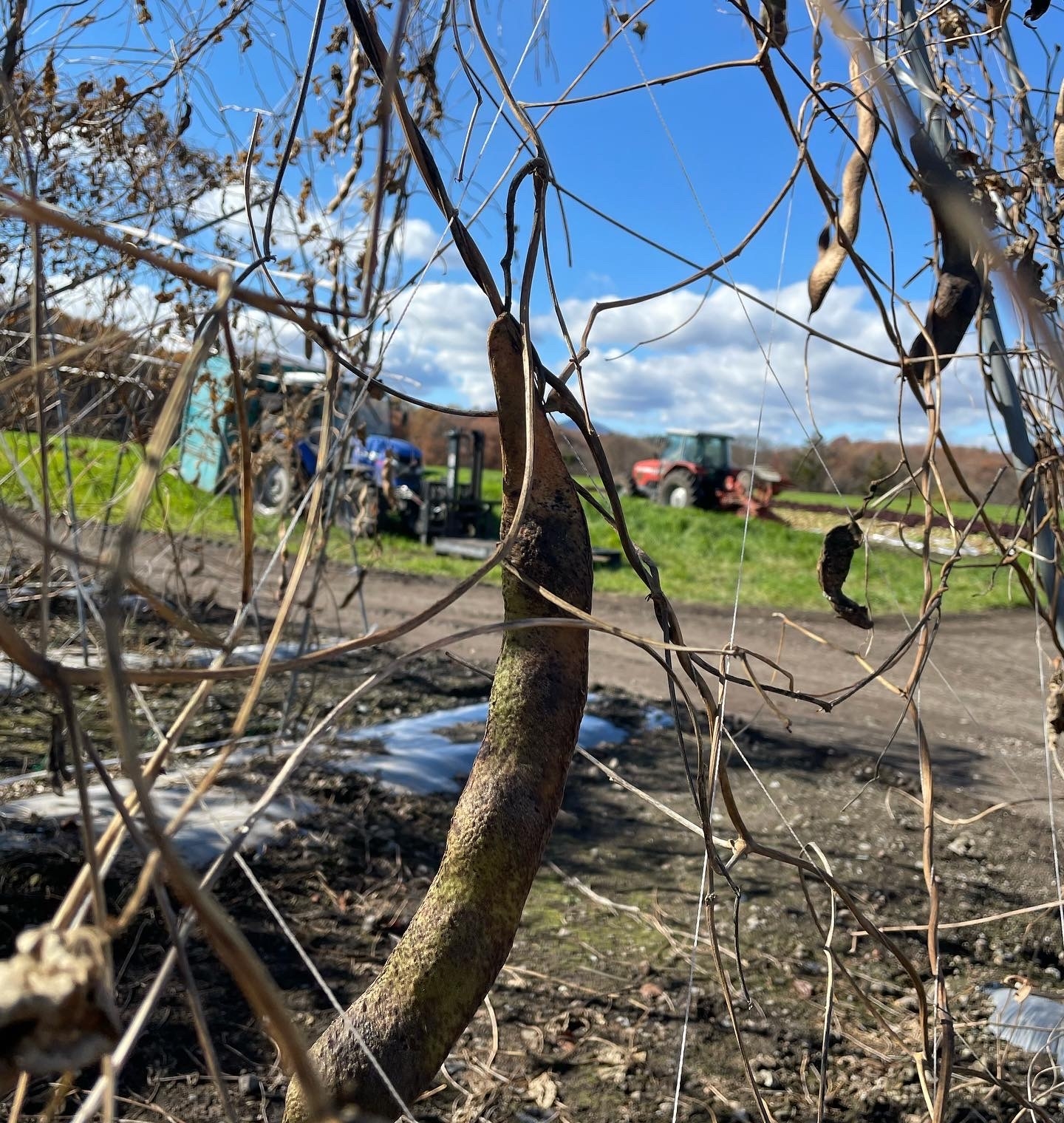 花豆はツルが長くのびる為、アーチ状の支柱も長く、畑に差し込む時もとても大変です。最も大変だと感じたのは豆の選定作業。よく乾燥させた豆を脱穀し、色味で分け、大きさで分け、割れや傷があるかどうかで分け、A品、B品、C品などに分けていく。この作業をほとんど手作業で行っており、長い時間と手間がかかっていることが良くわかりました。また、A品として出荷できるのは、収獲した豆のうち半分以下程。台風が来た時にはほとんどの豆がダメになってしまうこともあるそうです。