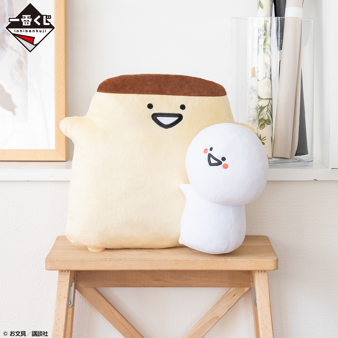 最後の1個を引くと手に入るラストワン賞には、プリンさんにお文具さんがハグをしている約30cmサイズとボリューム感のあるぬいぐるみをご用意しました。ラストワン賞と同仕様のぬいぐるみが抽選で当たるダブルチャンスキャンペーンも実施予定です。