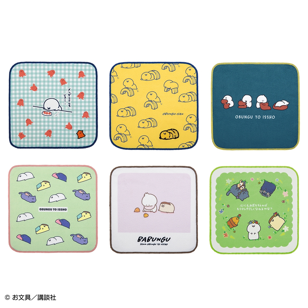 このほか、さがら刺繍がワンポイントで入ったデザインを含んだ全6種のタオルや、アニメの癒されるシーンが描かれたデザイン、新規描きおろしデザインを使用したラバーチャームと、いずれもお文具さんたちに心癒される商品を取り揃えました。