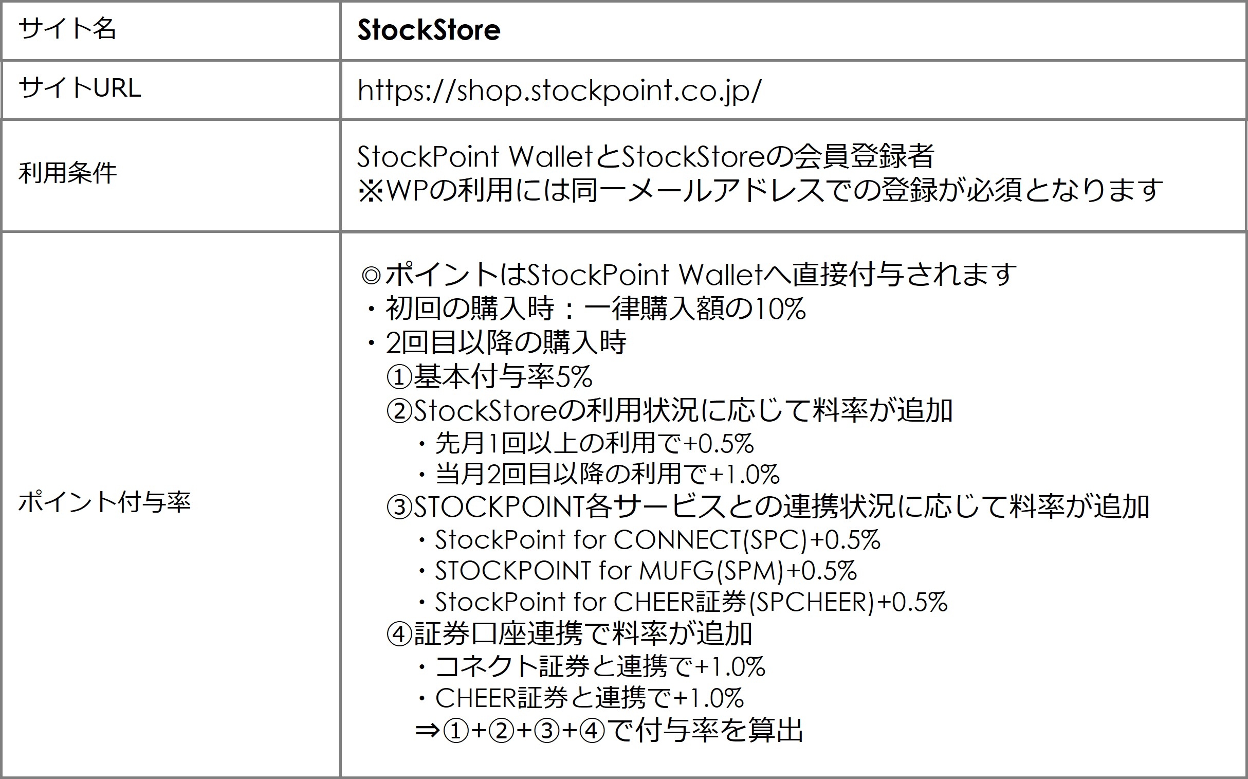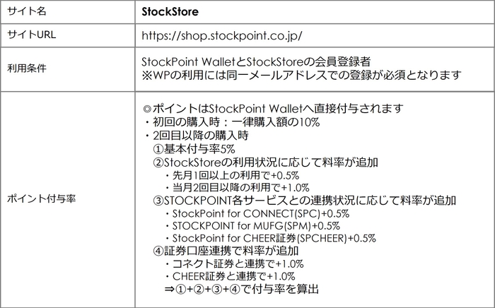 第一弾は、StockPoint会員が利用できるショッピングサイト『StockStore』をオープン。
