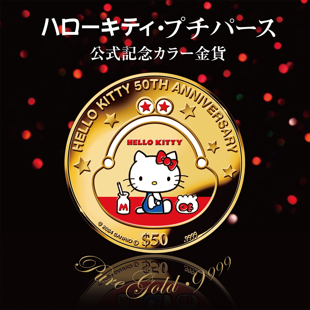 ハローキティ始まりのストーリーを、永遠に輝く純金に。 ハローキティ・プチパース 公式記念カラー金貨、新発売!