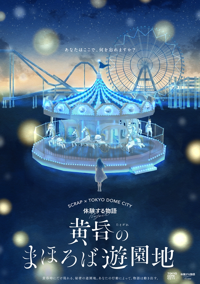 リアル脱出ゲームを企画運営する株式会社SCRAP(所在地:東京都渋谷区、代表者:加藤隆生)は、参加者と登場人物が一体となって物語を作り上げるイベント“体験する物語project”の最新作『黄昏のまほろば遊園地』を、東京ドームシティにて2023年6月2日(金)から7月2日(日)の1ヶ月間限定で開催することを発表いたします。