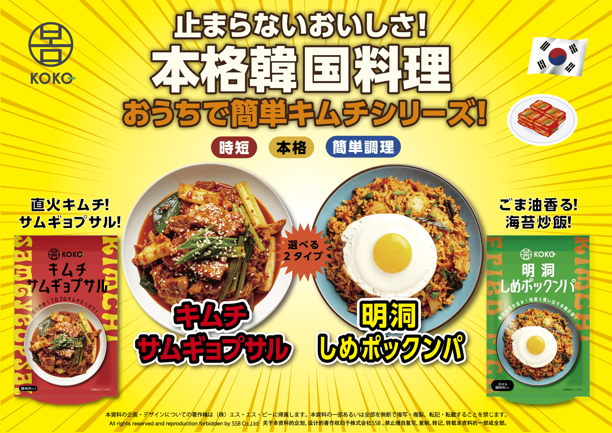 株式会社エス・エス・ビーの「本格レシピを食卓に。」をコンセプトとした新ブランド「KOKO」より、本格韓国料理店の味が自宅で楽しめる簡単調理シリーズ3種類が登場、2025年9月から順次発売します。