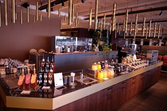 滋賀県初出店となる「スカイテラス」業態の「ロビーガーデンbyスカイテラス」は、長さ約10メートルのビバレッジバー(ドリンクバー)と、ブティックホテルを彷彿とさせる開放的な空間が特徴で、特別な時間を満喫できる内容となっています。