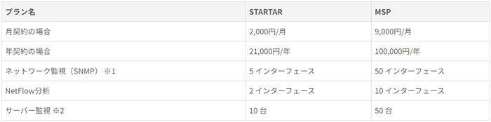 最大の強みは、ネットワーク監視だけでなく、ネットワーク上のサーバー監視、また、サーバー上のアプリケーションパフォーマンス監視(APM)、ユーザー視点のWebサイト監視までサポートする豊富な監視機能です。必要な監視機能を必要な分だけ使うことができ、低価格でスモールスタートできるので失敗することがありません。